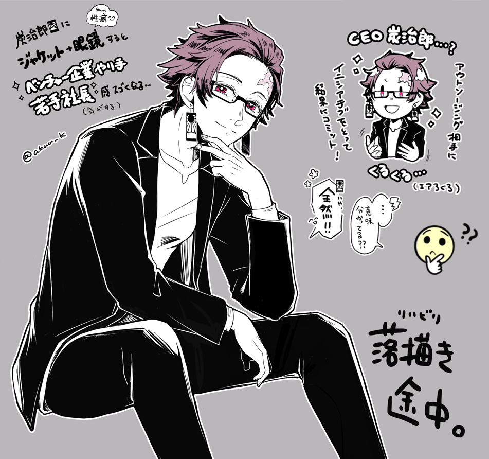 【リハビリ落書き途中】 我が家の🎴にジャケット+眼鏡すると途端にベンチャーの香りが漂いだす謎…🤔🤔🤔