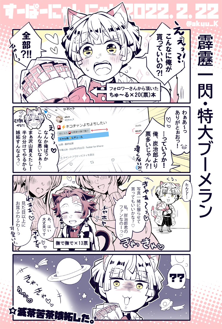32 225 【2022年2月22日(すーぱーねこの日)】 からの↓ 【4月10日(しっと/嫉妬の日)】 にゃんにゃん🐱🎴⚡炭善✨ 以前ふわっとやったアンケで我が家の炭善ちゃん達をヨシヨシして下さった皆様、有難うございました~🥰 22/04/10 00:00