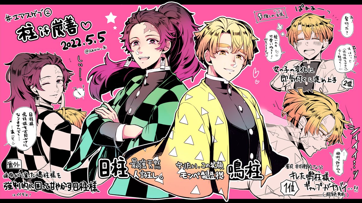 【エアスケブ②】 柱if炭善 🎴が柱になったら髪伸ばして欲しい~!(幼少期ポニテがデフォ+尊敬する人達(父/縁深い先輩柱🔥🌊さん等)が長髪なので) ⚡は鉄板的に長髪で描かれる事が多いけど、個人的には今と同じorいっそもっと短くなる位でも好き…😌 柱ifは夢一杯!素敵なお題有難う御座いました~💕