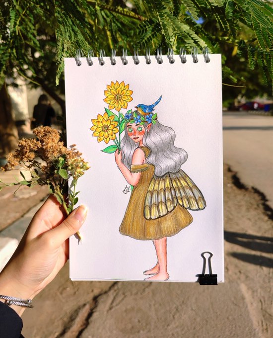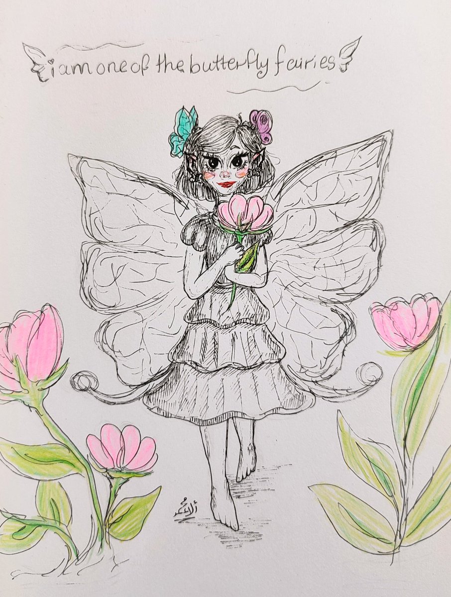 جنيّة الفراشات 🦋 مفيش وقت ابدع فيها بس المهم كلها من خيالي ✨✨✨ Day24: Fairy -------------- #DAY24 #Fairy #ink #inktoberchallenge #Inktober2022 #inktober #الرسم_قوة #cartoon