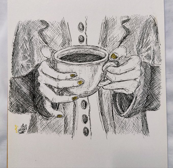 بالنسبالي مفيش حاجة مغرية قد فنجان قهوة 🧡 Day25: Tempting -------------- #DAY25 #tempting #ink #inktoberchallenge #Inktober2022 #inktober #الرسم_قوة