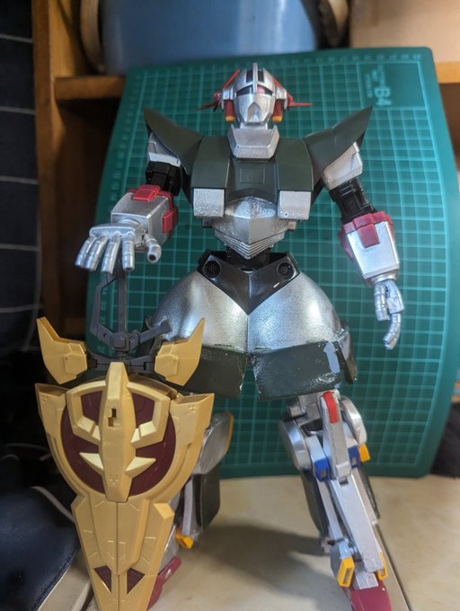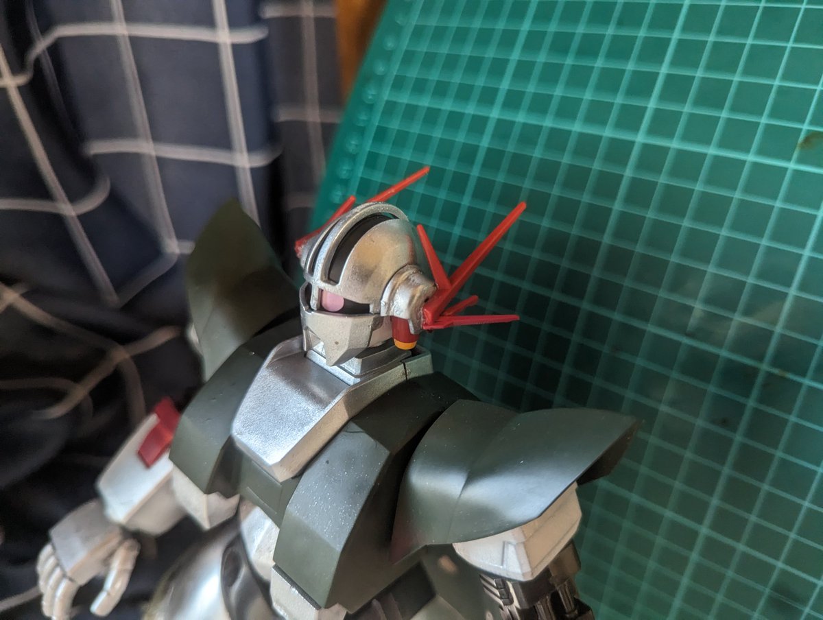 パーフェクトジオングを手直ししました。 頭部は飛行するのでアンテナ追加。 ミニスカート過ぎるので適当なパーツを塗装し貼付けた #ガンプラの画像貼るとRTされると聞いて #ガンプラ好きと繋がりたい #ガンプラ改造