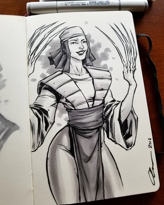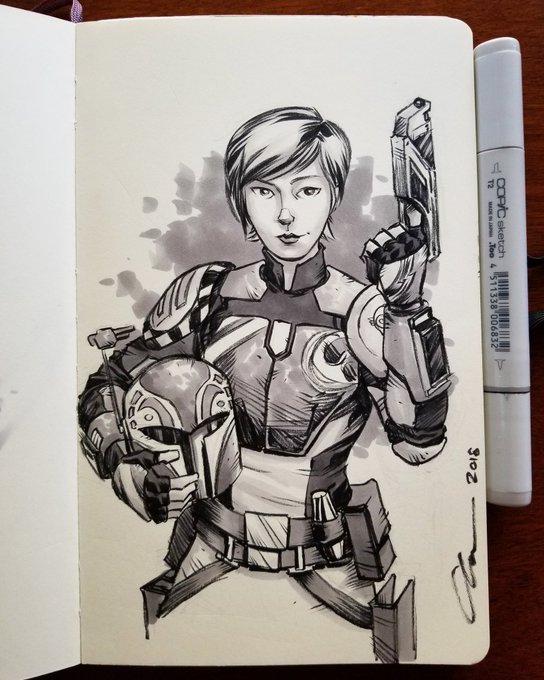 #inktober day 3: Sabine Wren is a mandelorian from star wars rebels. She's voiced by the amazing and hilarious Tiya Sircar @tiyasircar #starwars #starwarsrebels #sabinewren #sabine #mandelorian #copic #moleskine