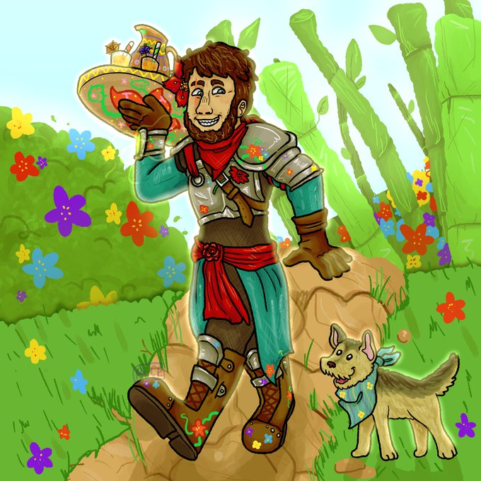 A day in Sanctuary Love this guy and his dog and his fun and peaceful empire :D Also, flower decorations! #EmpiresSMPfanart #empiressmpseason2 #MythicalSausageFanart