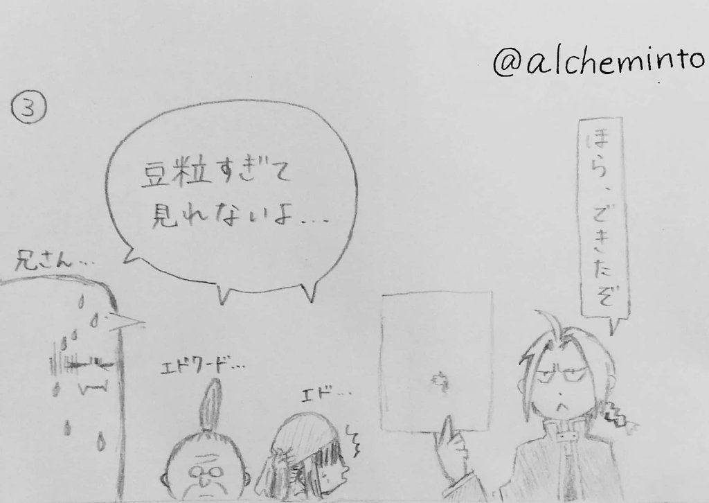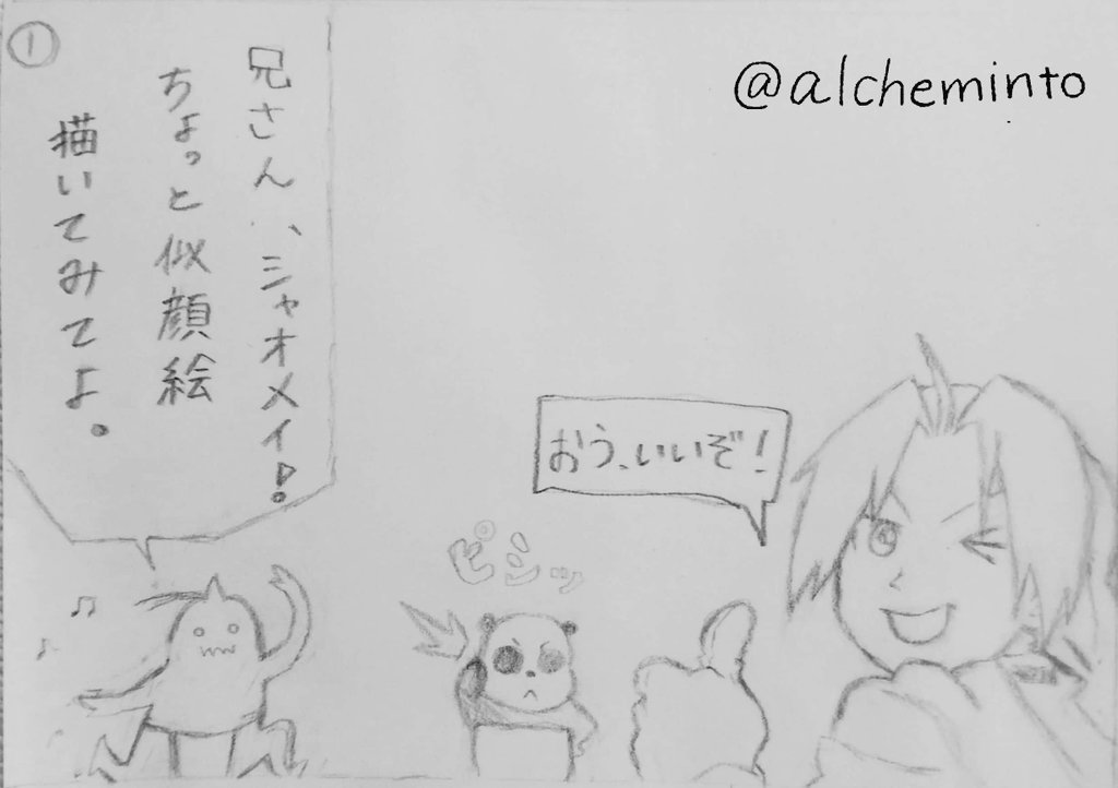 フォロワーさん200人突破! これからもよろしくです🙇 ⚠️この垢は雑多垢です💦 今日で夏休みが終わるので、最後にハガレンの4コマ(?)をオリジナルで描いてみました ほぼクロニクルにある4コマの絵を参考にしました😅 ぜひ見て頂けると嬉しいです😊 #ハガレン #絵描きさんと繋がりたい 【似顔絵】