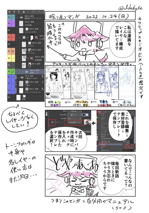 今回紹介したレイヤー構成はストーリー漫画用。振り返りマンガも量を増やすため、簡単に描けるようにテンプレを模索中です〜 そしてクソデカヘッドホン犬になることにしてみました🐕飽きたら止めるかも #コルクラボマンガ専科 #振り返りマンガ