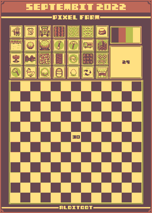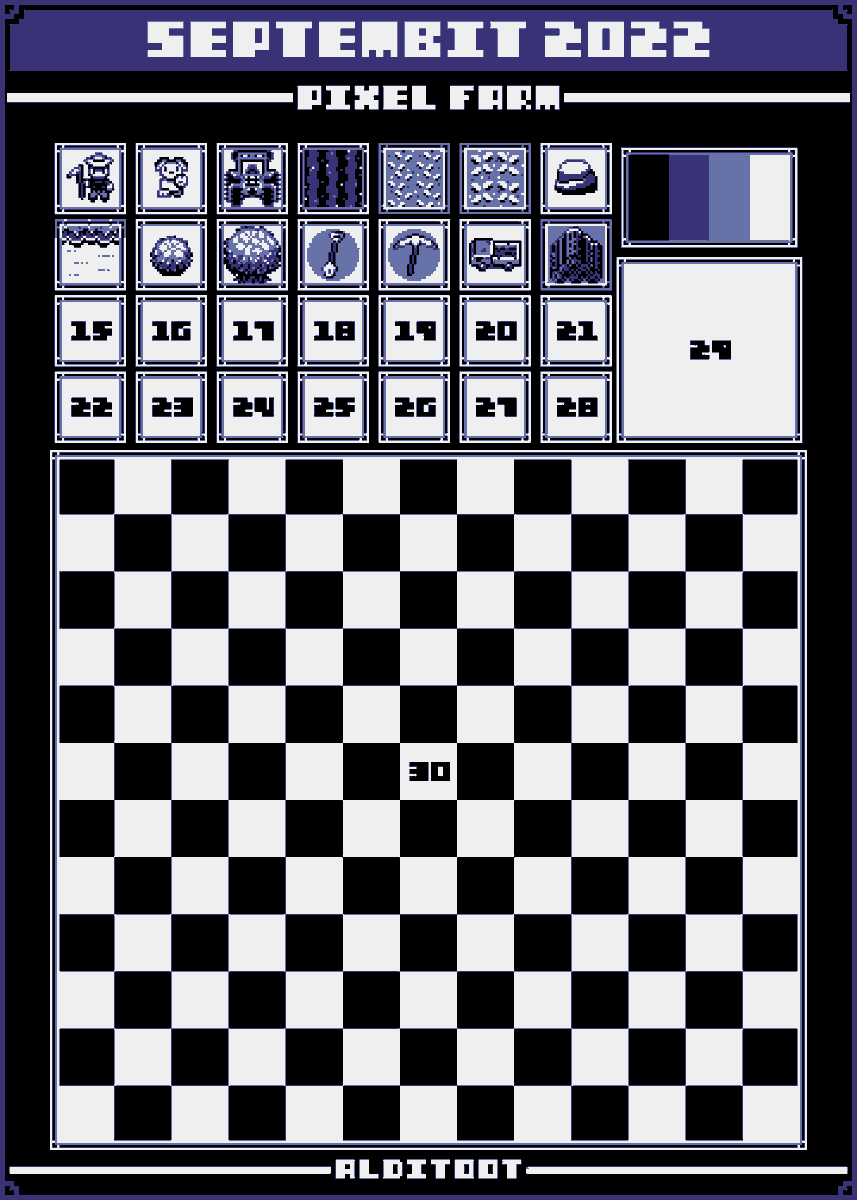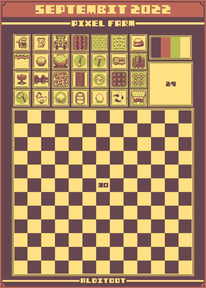 #septembit day 14 For today, I'm showing the full template so far, with the ARQ4 palette I'm planning on using this palette as an alternative for the finished farm, since it fits so well! The tractor will be reworked (☞゚ヮ゚)☞ #pixelart | #ドット絵 | #Septembit2022