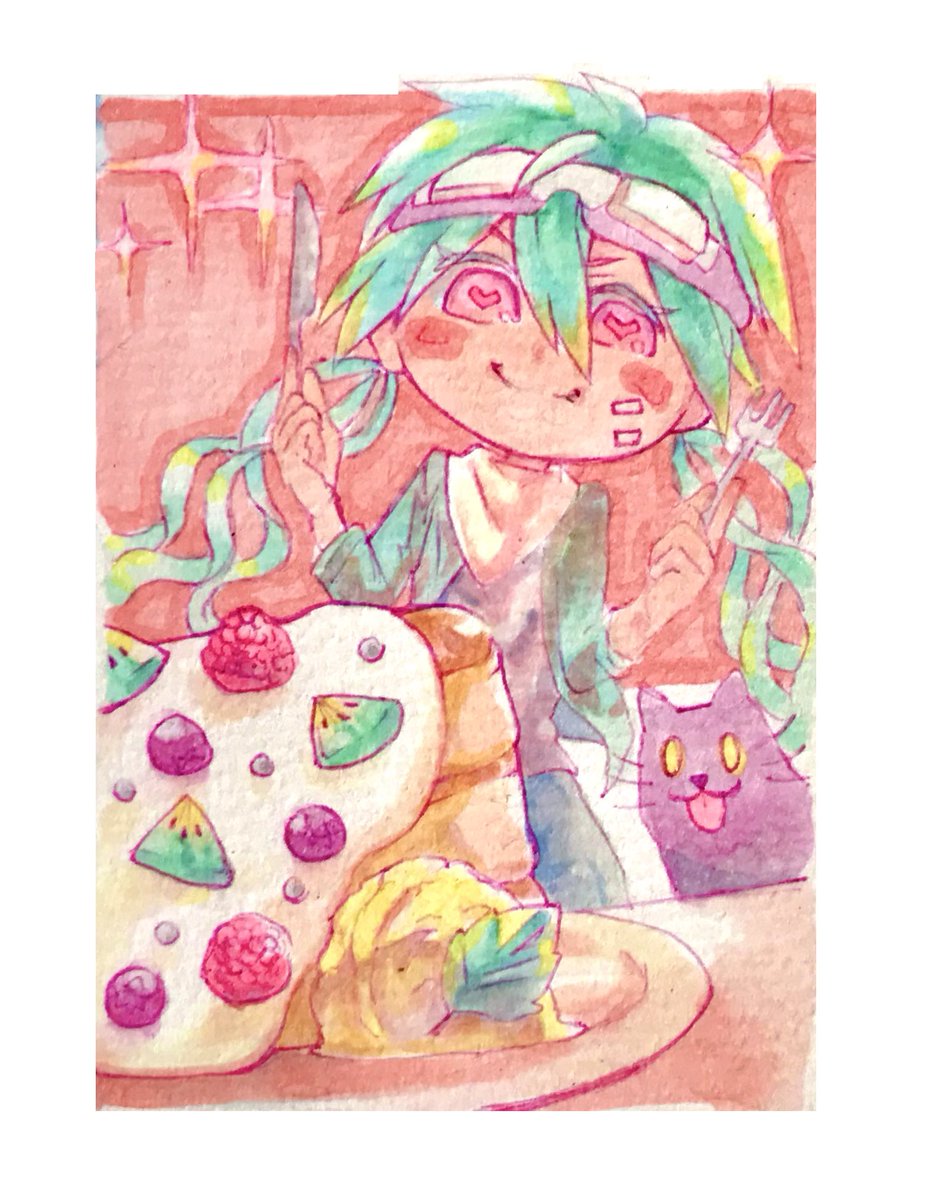 5月最後のイラストはデフォ絵でした。 パンケーキは幸せの味…😋 #アナログ #コピック #illustraion