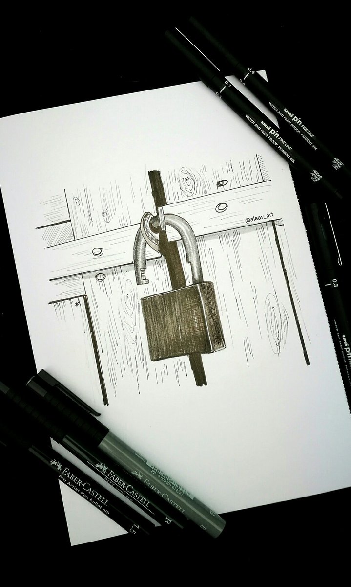 Un candado defectuoso. 🔓 #inktober2021 #open #abierto #day22 #ink #inktober #dibujo #arte #art #sketch #sketching #sketchbook #tinta #fabercastell #uniball #inkmonth #fineliner #mestinta #dibujotinta #candado