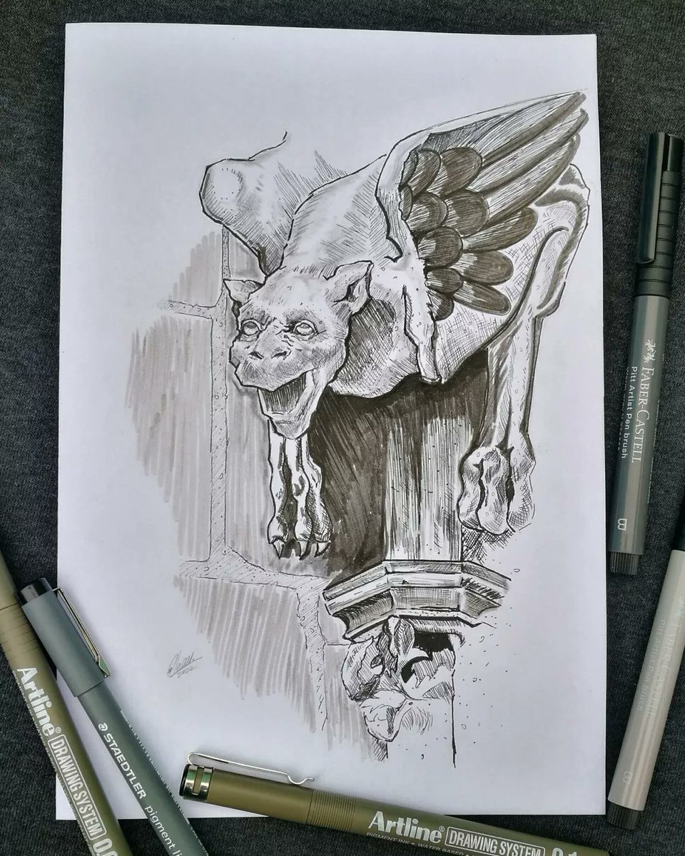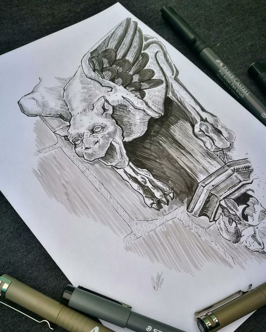 Octubre!! Mi mes favorito para mantener mi mente ocupada.. 😍🖋️ #inktober2022 Día 01: Gárgola/ Gargoyle #inktober2022gargoyle #inktober #inkdrawing #ink #tinta #sketchbook #inking #art #arte #gárgola #sketch #blackandwhite