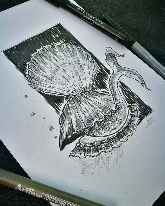 Día 04: Vieira/ Scallop #inktober2022 Vieiras hambrientas. #inktober2022scallop #inktober #inkdrawing #ink #tinta #sketchbook #inking #art #arte #scallop #sketch #blackandwhite #artistasfabercastellperu #artistasfabercastell #trazosperuanos #vieira