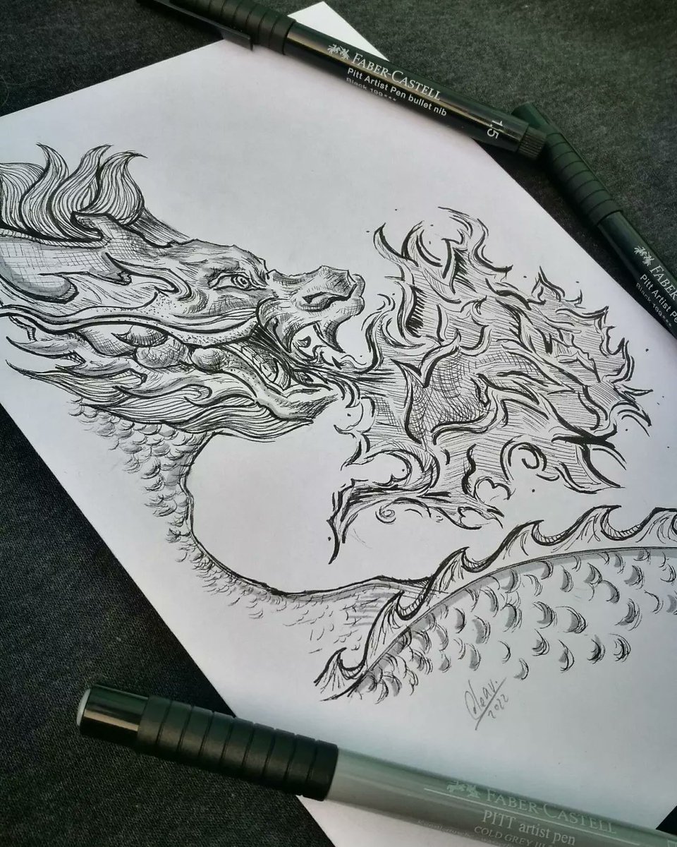 Día 05: Flama/ Flame #inktober2022 Dragón lanza llamas..😍❤️🐲 #inktober2022flame #inktober #inkdrawing #ink #tinta #sketchbook #inking #art #arte #flame #sketch #blackandwhite #artistasfabercastellperu #artistasfabercastell #trazosperuanos #flama #artline #dragon