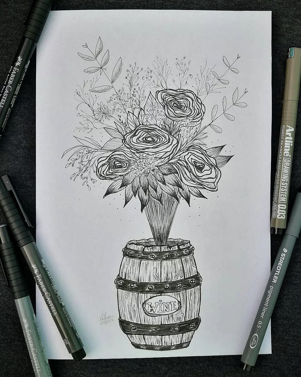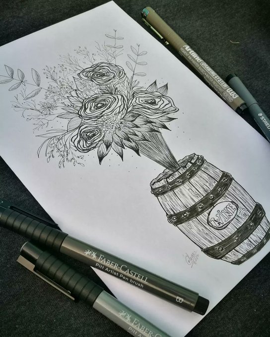 Día 06: Bouquet/ Ramo #inktober2022 No sé por qué el vino siempre me trae a la mente flores.🌼🌻🌺☺️ #inktober2022bouquet #inktober #inkdrawing #ink #tinta #sketchbook #inking #art #arte #bouquet #sketch #blackandwhite #artistasfabercastellperu #artistasfabercastell