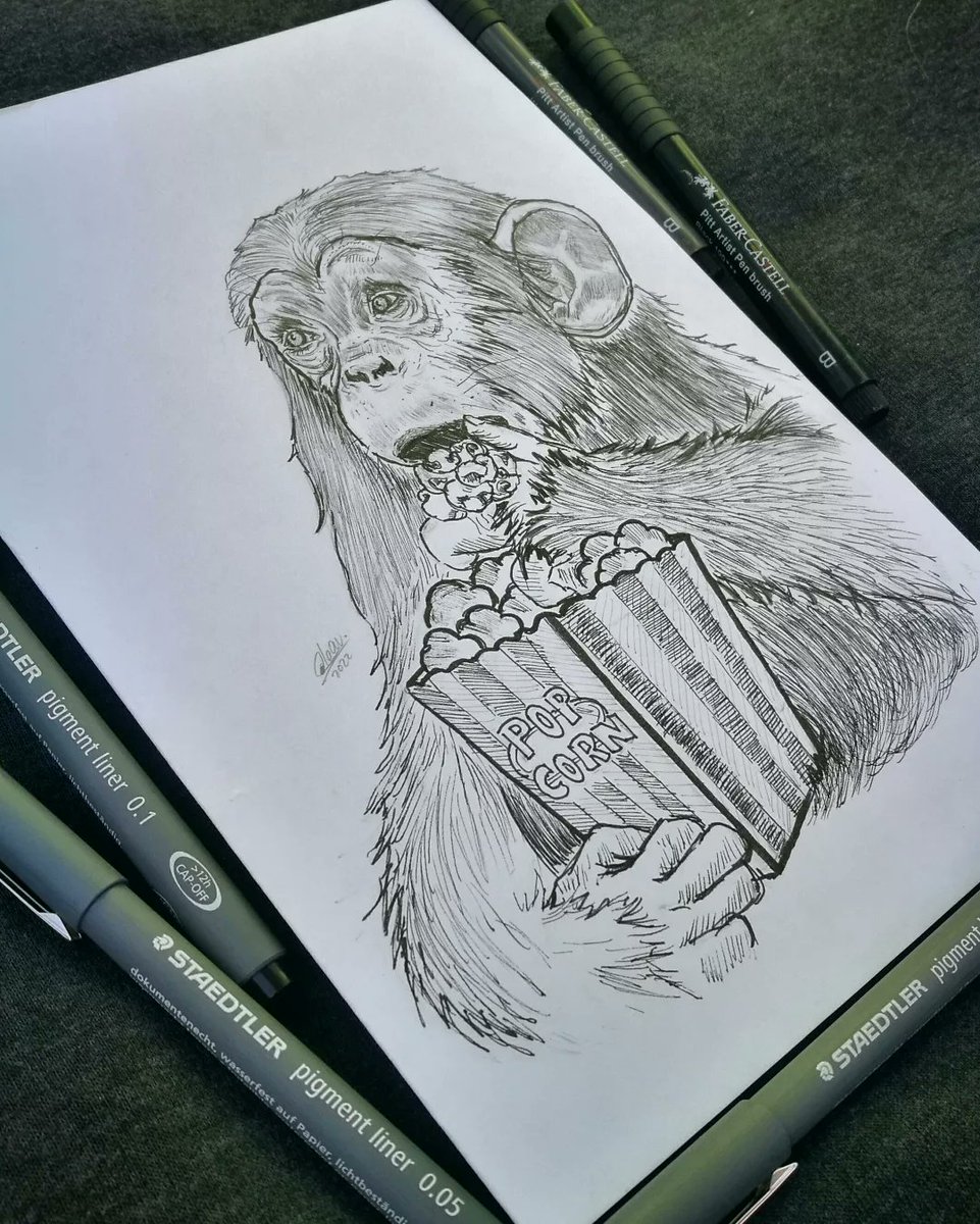 Day 17 Salty / Salado #inktober2022 Me encantan las ideas locas que tengo dando vueltas en mi cabeza y cuando las saco me enamoran ❤️ #inktober2022salty #inktober #salado #monkey #inkdrawing #ink #tinta #sketchbook #inking #art #arte #sketch #blackandwhite #inktobersalty