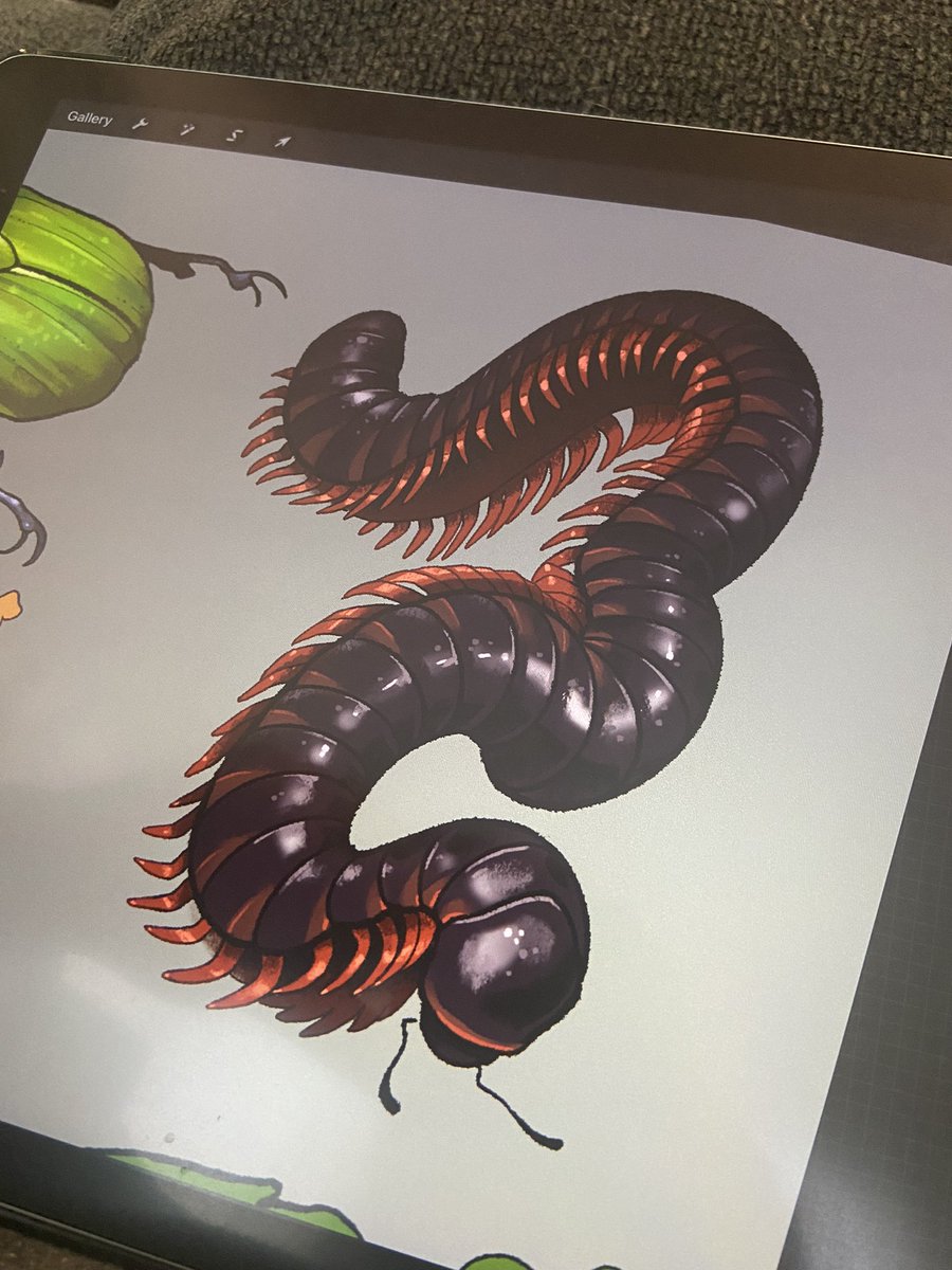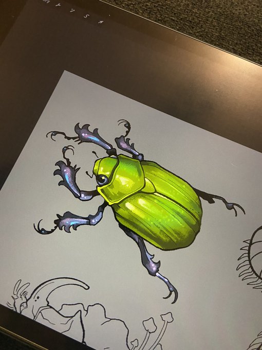 doing #Invertober2022 by @fossilforager this year— days 1 & 2 are beyer’s scarab beetle & giant african millipede!