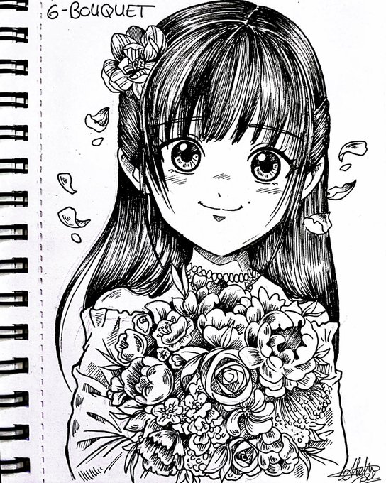 🎨 #inktober2022 🎨 Jour 6 - #bouquet Pas de fan art cette fois; j’ai laissé mon inspiration faire le taff avec ce dessin original 🥰💐