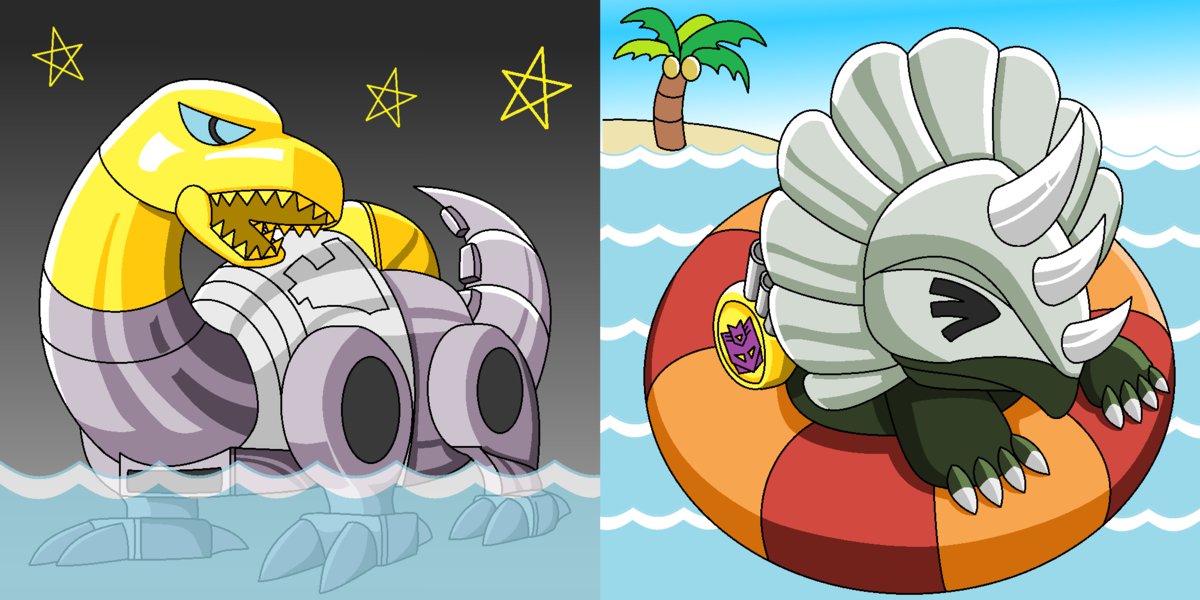 恐竜将軍ダイナザウラー。 トランスフォーマーZに登場する九大魔将軍の1人。 (当時の)恐竜らしく頑丈で鈍い。 「転んだ、痛い」 調子に乗って恐竜メカ描いてみました。 #トランスフォーマー #トランスフォーマーZ