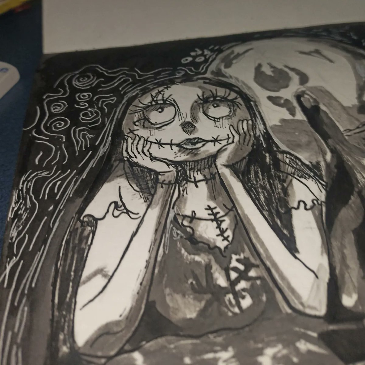 Inktober Day 7 "Tragedy's a at hand" Nightmare before Christmas prompt list #inktober #inktober2022 #inktoberday6 #halloween #sallysong #art #ink #nightmarebeforechristmas #Fanarts