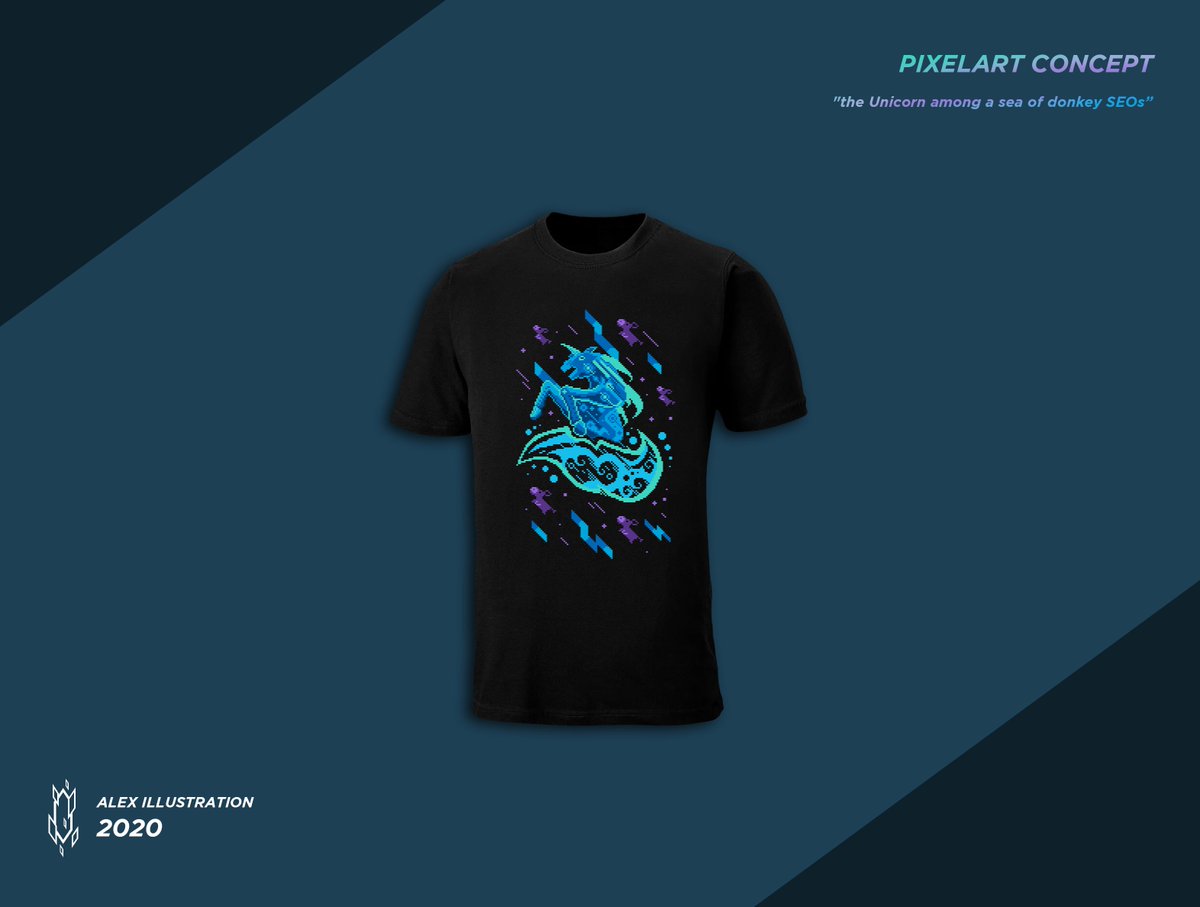Unicorn Pixelart Sprite for a T-Shirt Design [Commission] "the unicorn among a sea of donkey SEOs" Full project: artstation.com/artwork/rAv632 . . #unicorn #pixelart #sprite #illustration #aseprite