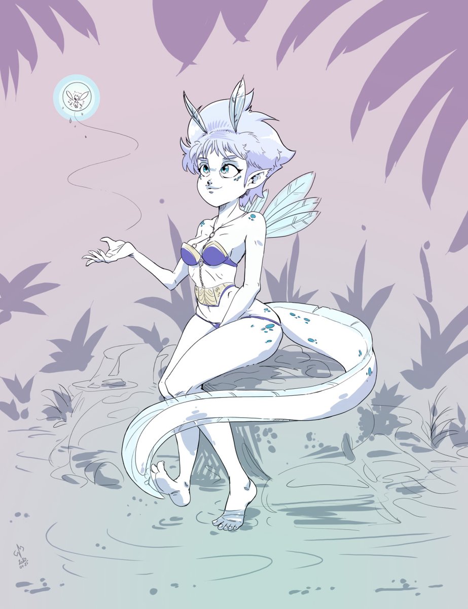 5 36 Switching to digital has not made me draw faster yet. It has in fact slowed me down. Ahhh- nyways, here's a water sprite. Does this count for #mermay? 20/05/25 16:54