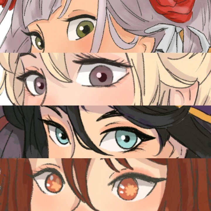 eyes drawing from my previous #genshinimpactfanart #noelle #jeangunnhildr #MonaMegistus #HuTao 👀💜💕🍦🍓🌹🌸🌺☁