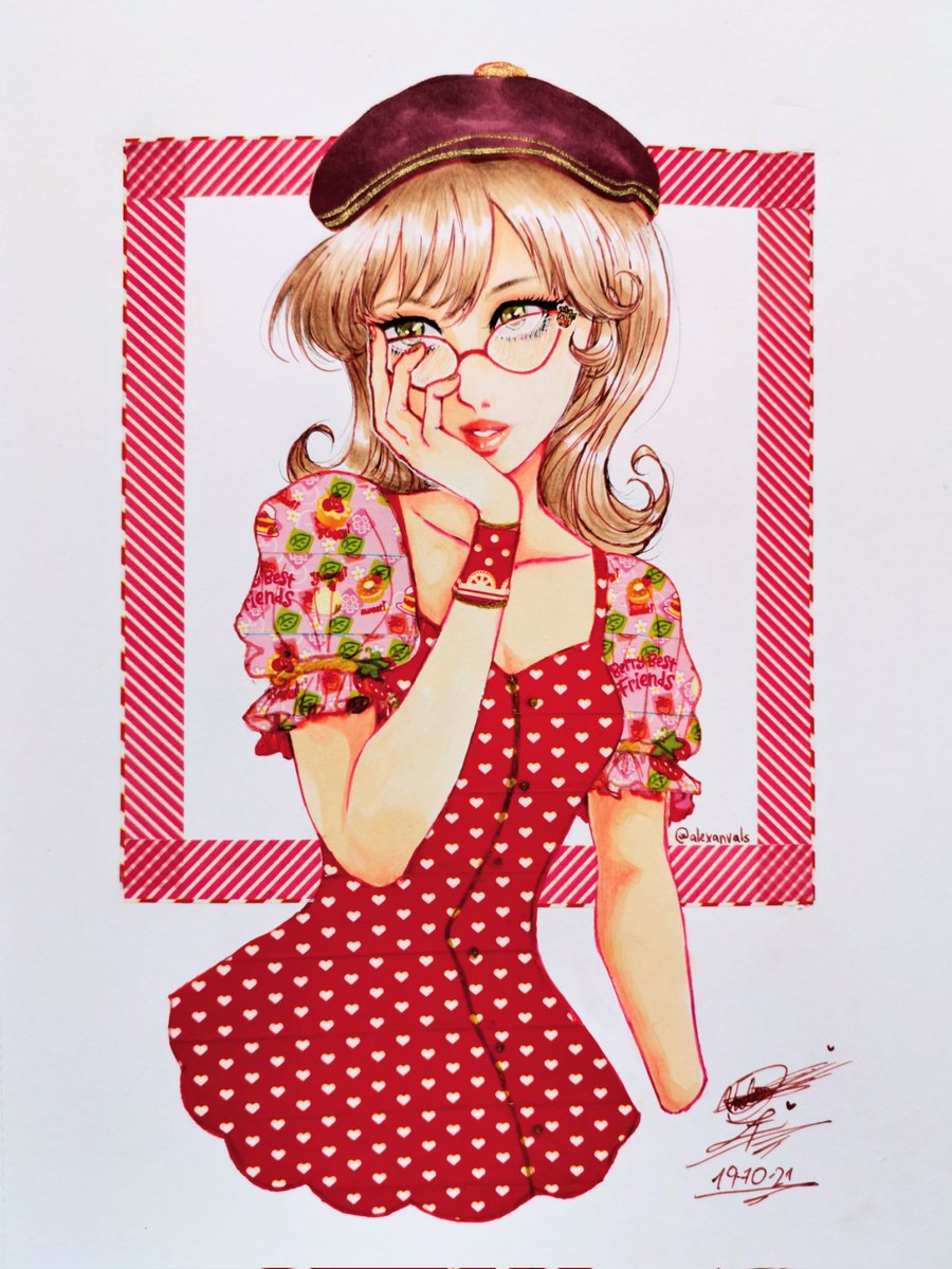 ♡☆#DrawTober Day #19: Red Fantasy~☆♡ I REALLY LIKED this washitape illustration even if this don't share the #Inktober rules... and I loved this two versions [thread] Can't decide who is better!! 💖💫👠💄 Tell me wich is ur favorite~♡ #washitape#markers#red#illustration