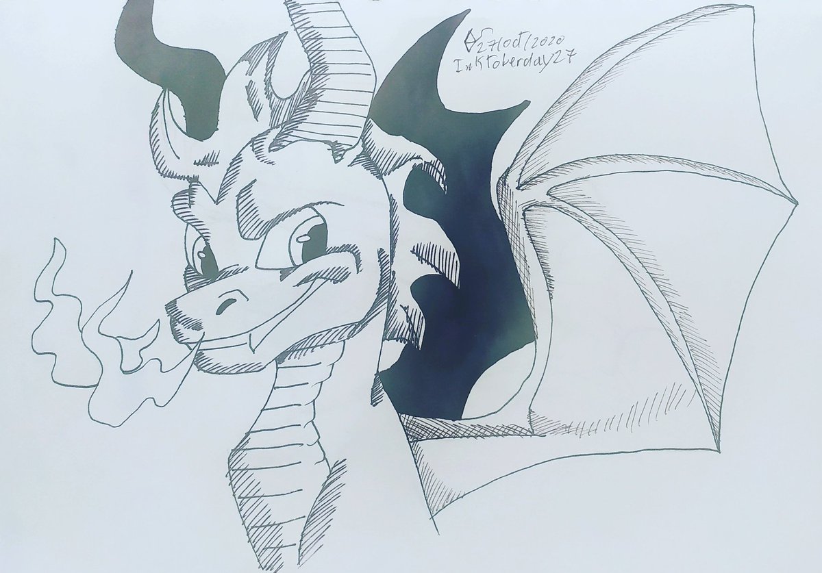 Dibujo del día 27 del #inktober2020 , esta vez del personaje de #spyrothedragon del videojuego de #spyrogame * #spyrofanart #spyrothedragonfanart #fanart #art #videogame #gametober #alexeriesarts #inktoberday27 #spyro