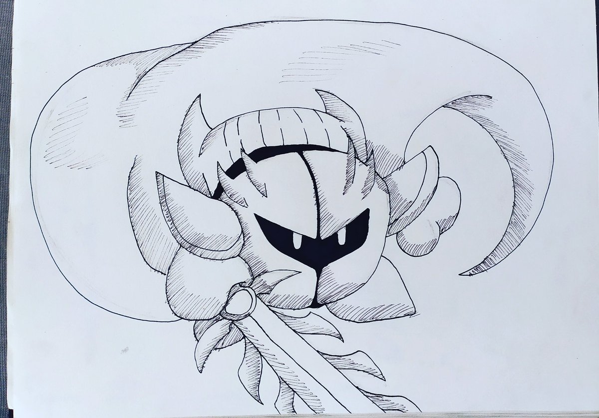 Dibujo del día 28 del #inktober2020 , esta vez del personaje de #metaknight del videojuego de #kirby * #metaknightfanart #kirbyfanart #fanart #art #videogame #gametober #alexeriesarts #inktoberday28 #nintendo #nintendofanart