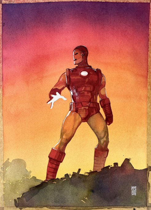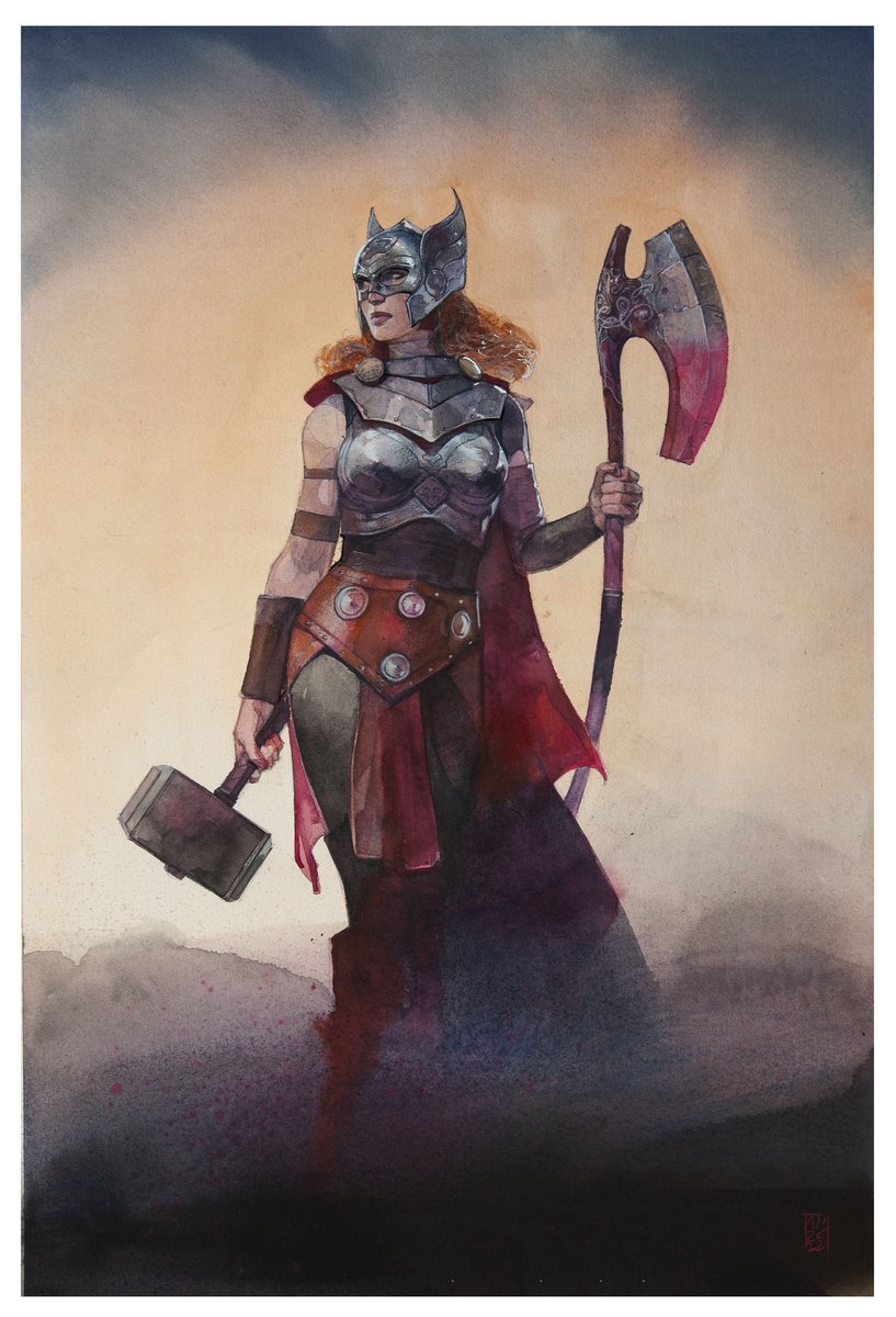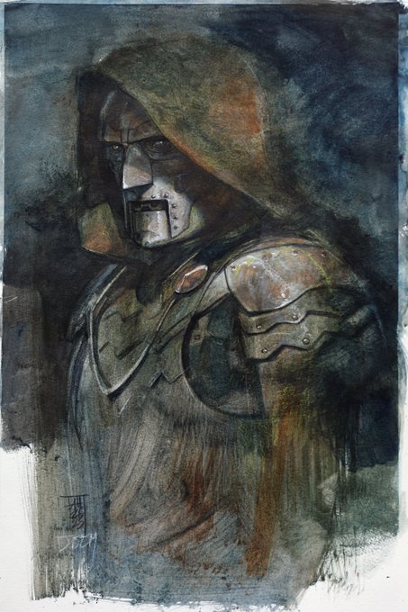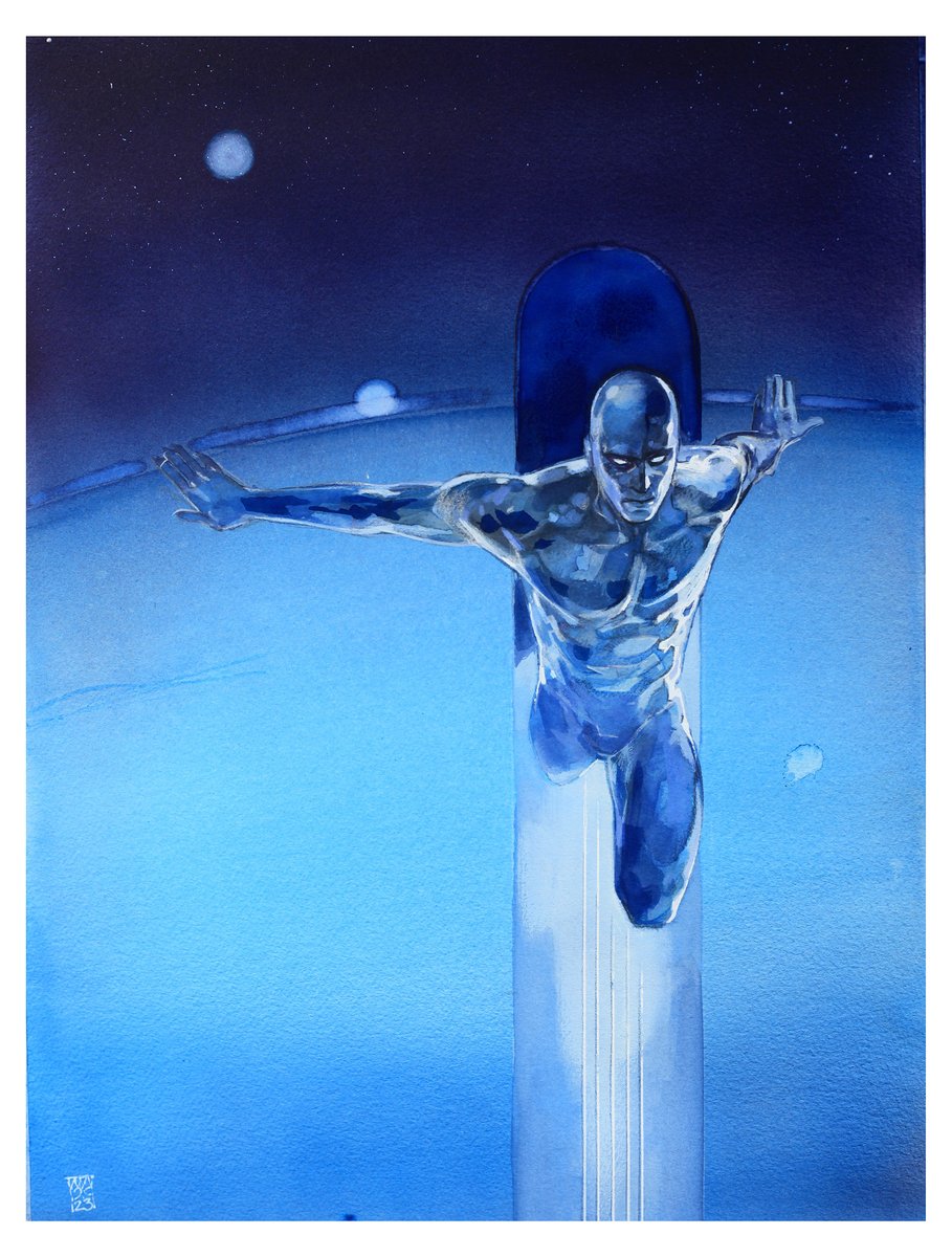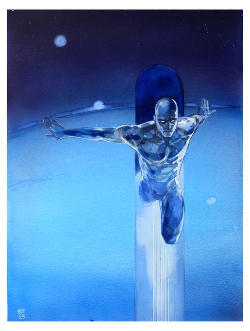 I am beyond happy to share this cover with you guys, it took 5 days to paint and the result is pretty decent. FANTASTIC FOUR 13 Knight's End variant. On Arches Hot Press 640gms paper 15x22. Watercolors and a touch of acrylics. Available.