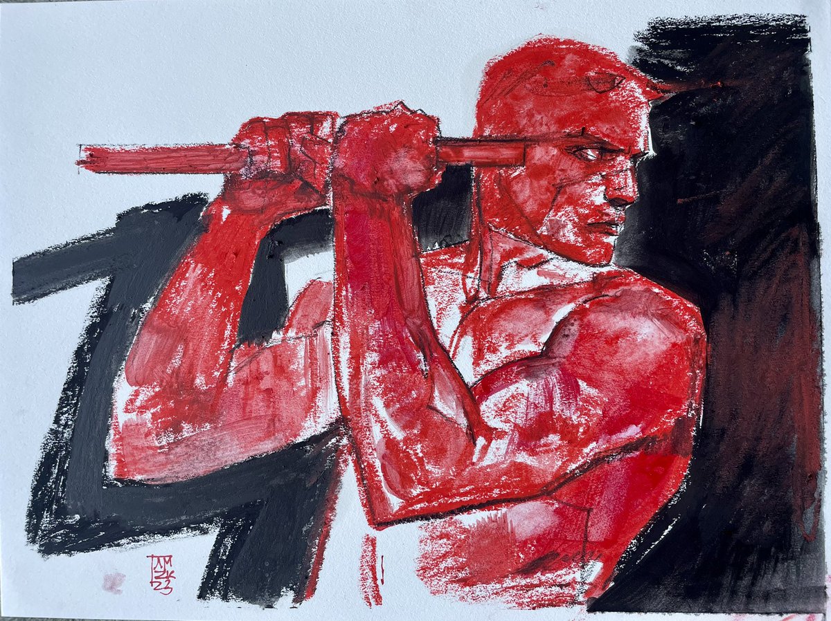 Saw @Daredevil was trending, so let me share an art piece previously unseen . It's the dynamic duo though, since I don't have any DDs solo right now. 12x16, pencils and watercolors. I particularly like Elektra's face, reminds me of Cher a bit. DMs welcome.