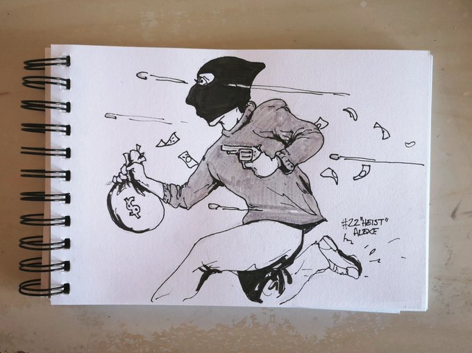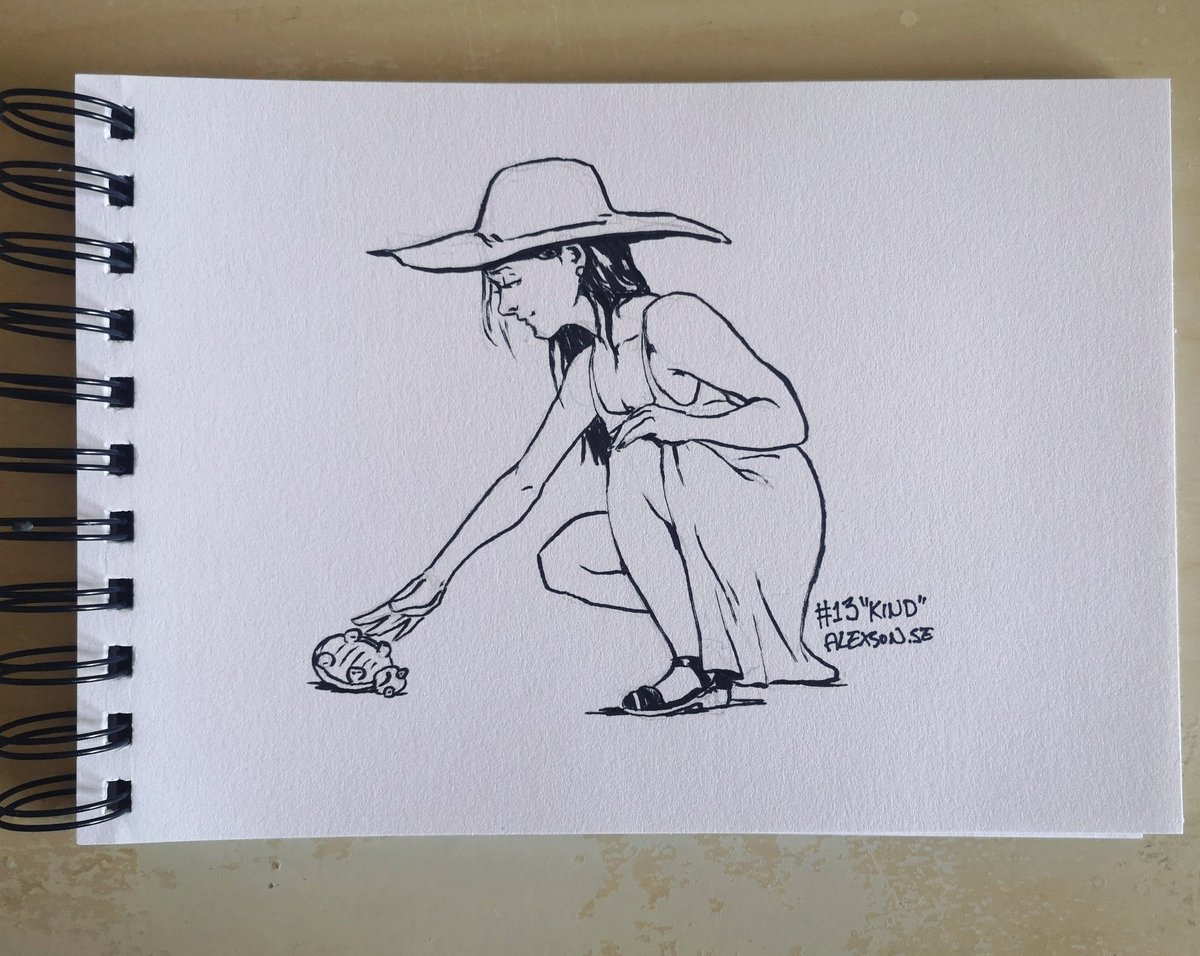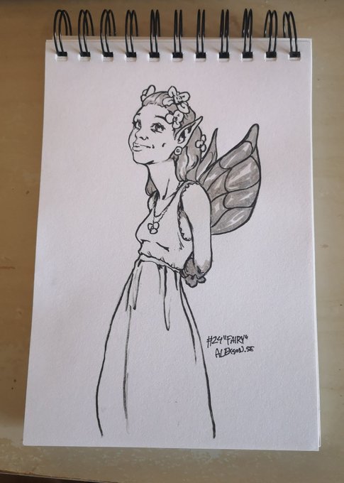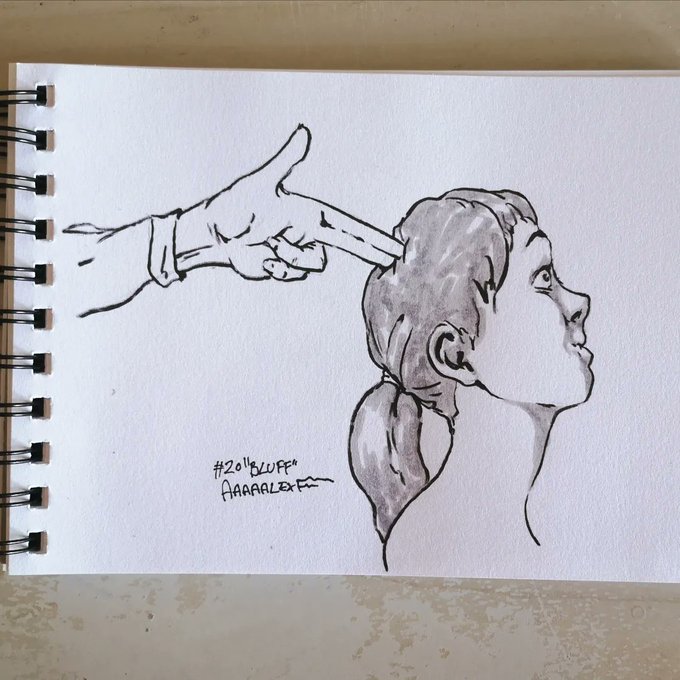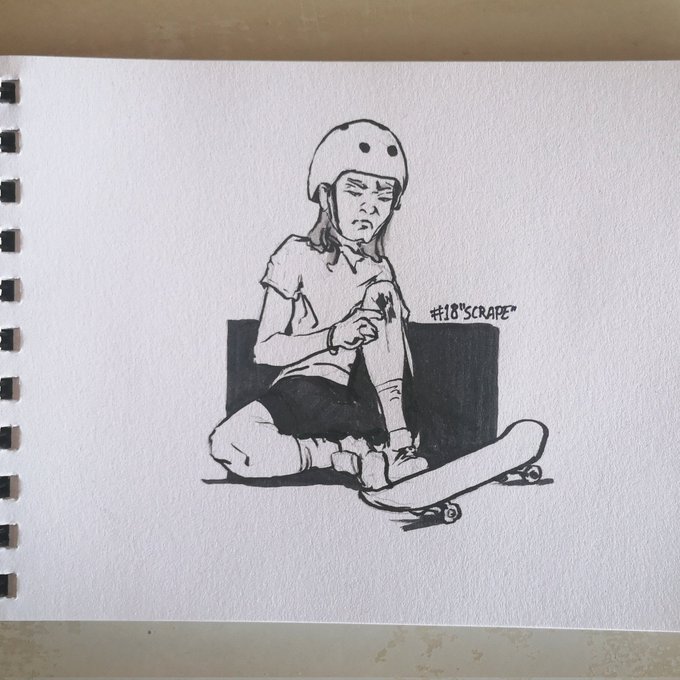 #inktober Day 18 "Scrape" I added the black box behind her as an artistic choice, not because I messed up her hand completely. #inktober2022