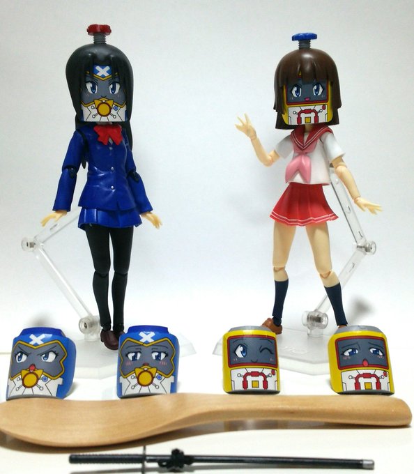 ヘボ子&ペケ子姉妹完成しました 頭のネジはマグネット固定なので交換可能です #ヘボット