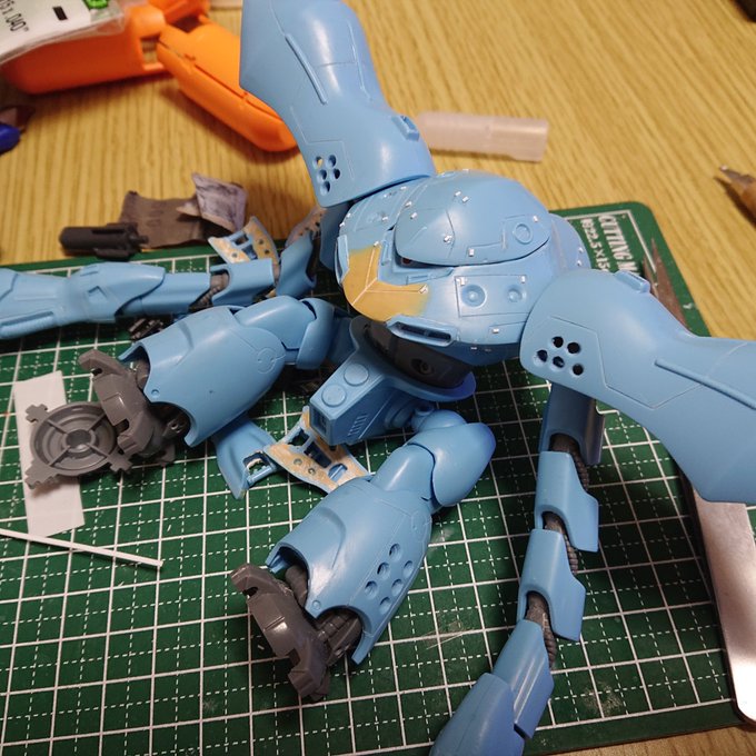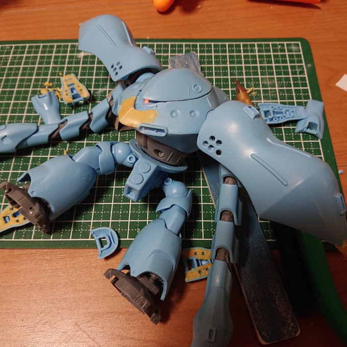 #明日の祝日は平日になったのでジム貼る 良いタグを見てしまったのでコロナ待機直前頃に久しぶりに作ったガンプラを引っ張り出して来ましたー😊 秒でやられそうなところがたまらなく好き! #ガンプラ #ガンプラ好きと繋がりたい #ガンプラ初心者