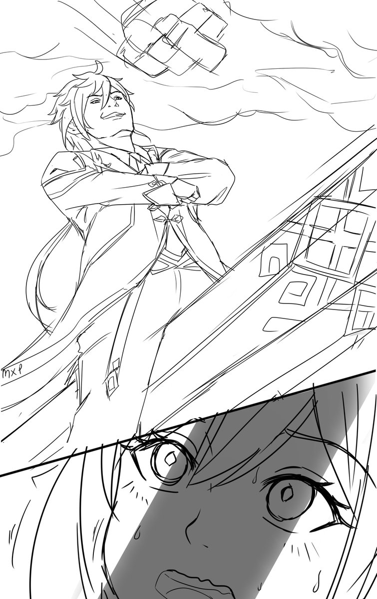 BTW I made a promise a while ago when I got Zhongli I'll make a fanart of him use Dan Kuroto pose, so here is the WIPs and I got spooked by Keqing so she will appear too #GenshinImpact #Zhongli #Keqing #Genshinfanart #RKGK #ArtistOnTwitter