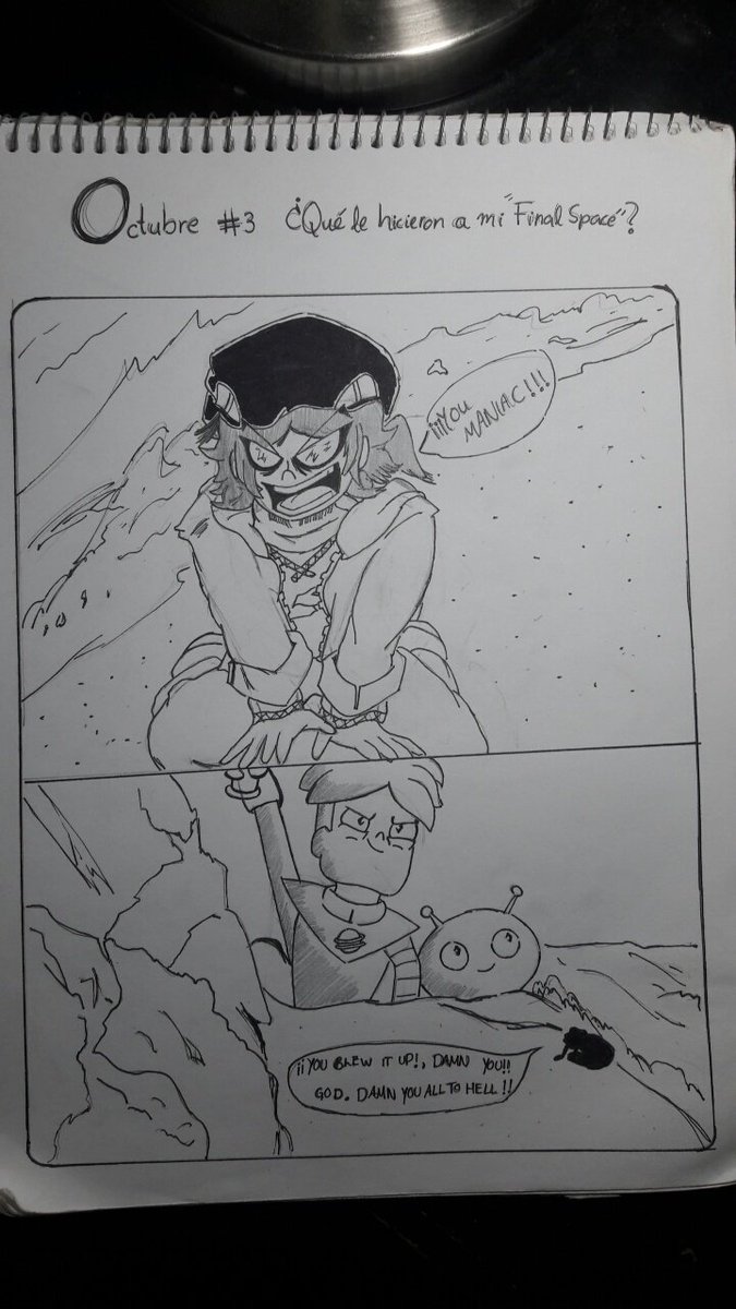 Octubre 3-Otro dibujo hecho. Me cago en todo, ¿por qué tuvieron que cancelar Final Space? La temporada 3 elevó mi hype. (Referencias que usé para el dibujo) #Mikoctober #inktober2021 #Inktober
