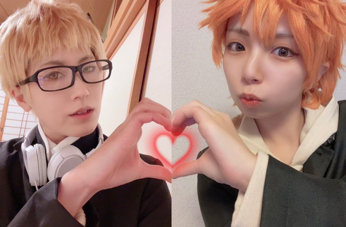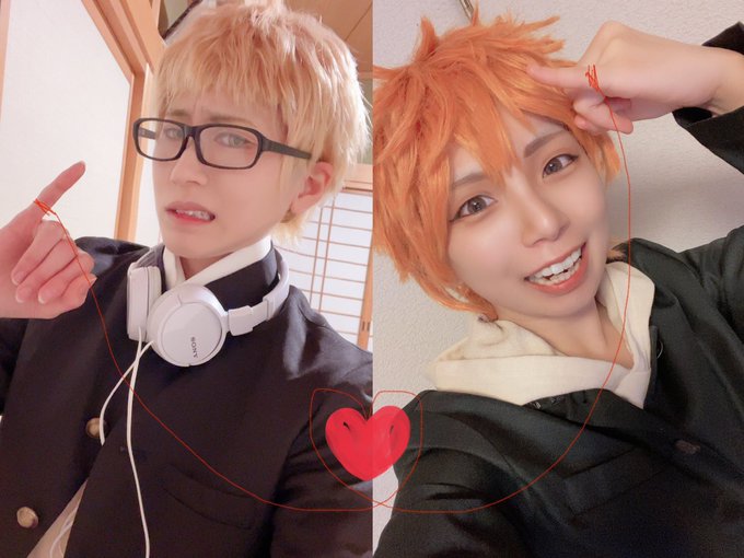 0 1 【cosplay】HQ ⚠️月日要素あり エア併せ。 ❤️ 日向:@hu_cos 月島:邑季 23/01/02 21:02