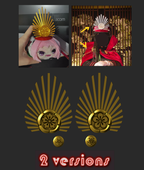 Oda nobunaga Pack button and hat details for cosplay💥 ARCHIVES STL AVAILABLE IN THE LINK 💕 Ready for 3d Print ! 💥💖 #fgocosplay #FGO好きと繋がりたい #FGO好きさんと繋がりたい #FateGO #3Dprinting #3Dprinted #3dprint #FGOアーケード LINK: cults3d.com/es/modelo-3d/m…