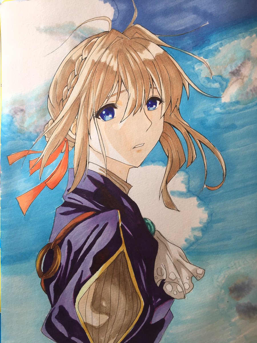 初描き ヴァイオレットエヴァーガーデン 早く映画観に行かないとー💦 背景の空も初描き😅 背景の描き方の本買ったけど難しい…🥺 #ヴァイオレットエヴァーガーデン #コピック #模写 #アナログイラスト