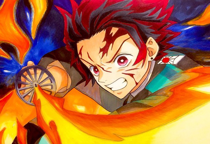 1 2 炭治郎初描き🤗 映画良かった〜❤️❤️ キャラより炎が難しかった(^^;; アニメ画の模写は難しい〜💦💦 #鬼滅の刃 #炭治郎 #コピック #アナログイラスト #模写 20/12/31 00:19