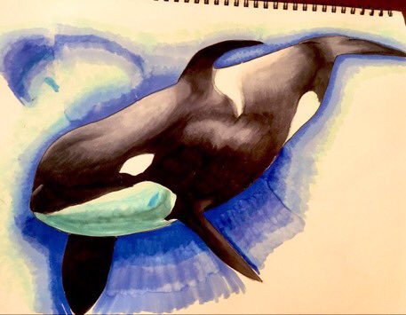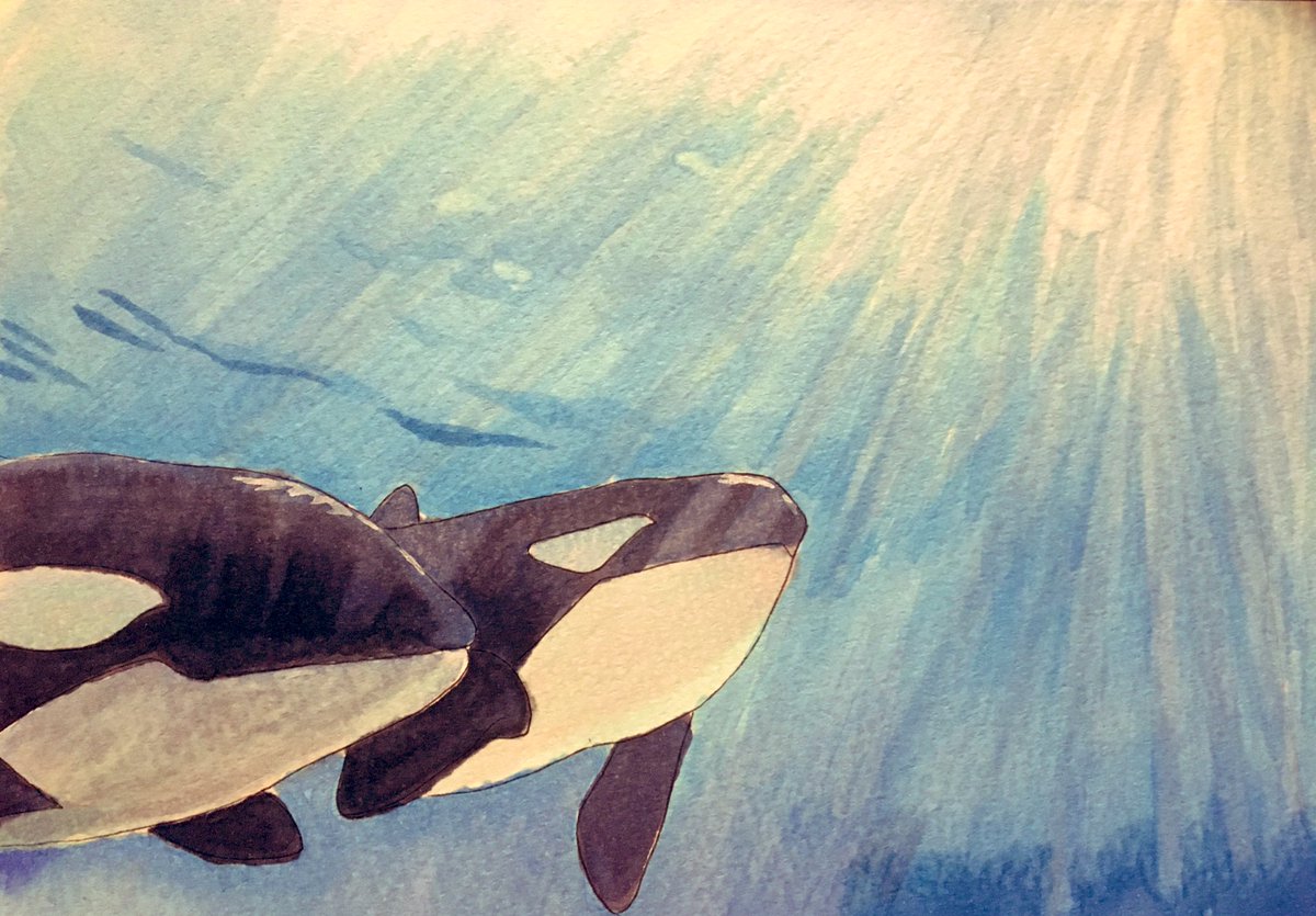 鴨川シーワールドさんのTwitterに上がってたシャチ描いてみた🤗✨ 光刺す感じが綺麗で描きたかったけど、難し過ぎた💦💦 シャチは前に書いた方が上手く描けたなぁ🙄と思って一緒に載せてみる😋 写実的な絵もっと描けるように練習😊❗️ #シャチ #鴨川シーワールド #コピック #アナログイラスト