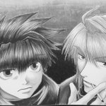 三蔵&悟空 4人描く予定がバランスミスって入りきらず2ショットになりました🤭 モノトーンの絵だったのをカラーで✨なのでモノトーンに編集もしてみました🤗 #最遊記 #三蔵 #悟空 #コピック #アナログイラスト #模写
