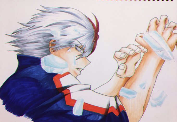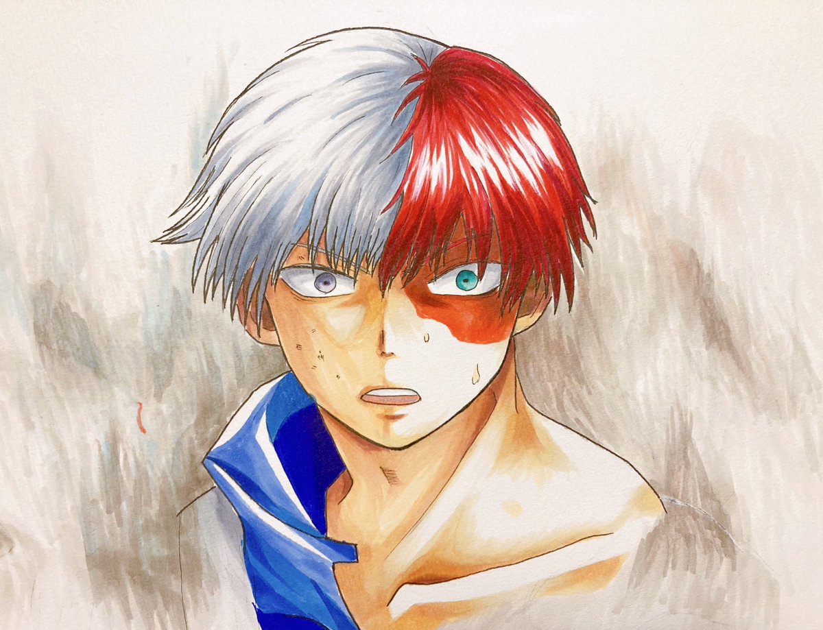 ヒロアカにハマったので久々お絵描き🤗 2期オープニングの轟君。 アニメ絵をコピックで塗るの分からない… でも楽しい… #コピック #ヒロアカ #轟 #アナログイラスト