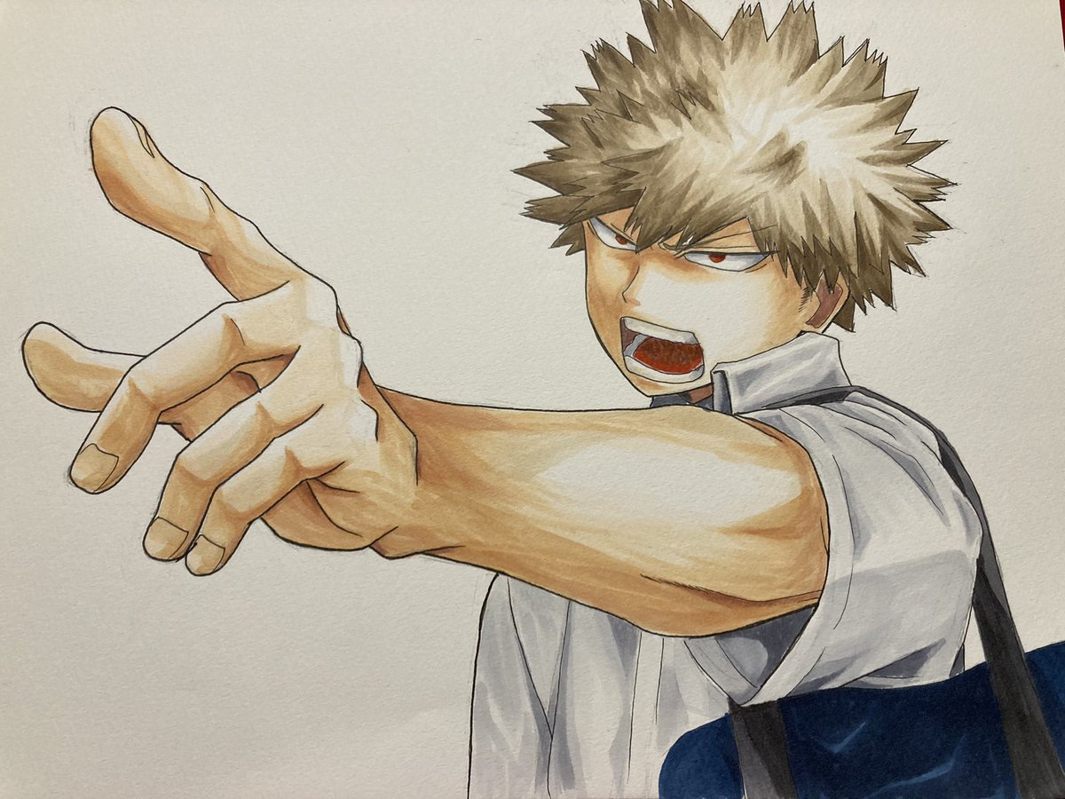 期末前の爆豪くん 手を描くの楽しい🤗 服の塗り方が一番今の課題…。どうしたら上手くなれるの #ヒロアカ #爆豪 #コピック #アナログイラスト