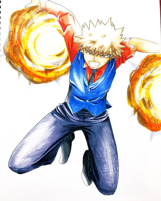 0 1 期末前の爆豪くん 手を描くの楽しい🤗 服の塗り方が一番今の課題…。どうしたら上手くなれるの #ヒロアカ #爆豪 #コピック #アナログイラスト 22/03/17 23:04