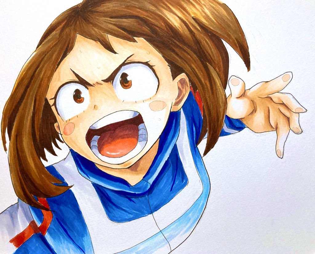 初描きお茶子ちゃん 可愛くて優しいのにかっこよくて好き。 33巻が本当にカッコ可愛い! #ヒロアカ #お茶子ちゃん #コピック #アナログイラスト #模写