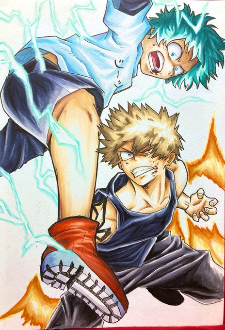 デクVSかっちゃん デクがずっとかっちゃん呼びしてるのと、その呼び方許してるかっちゃん。幼馴染な2人可愛い。 かっちゃん呼びの事は怒ってないよね? 話しかけると怒るけど。 #ヒロアカ #緑谷出久 #爆豪勝己 #コピック #アナログイラスト