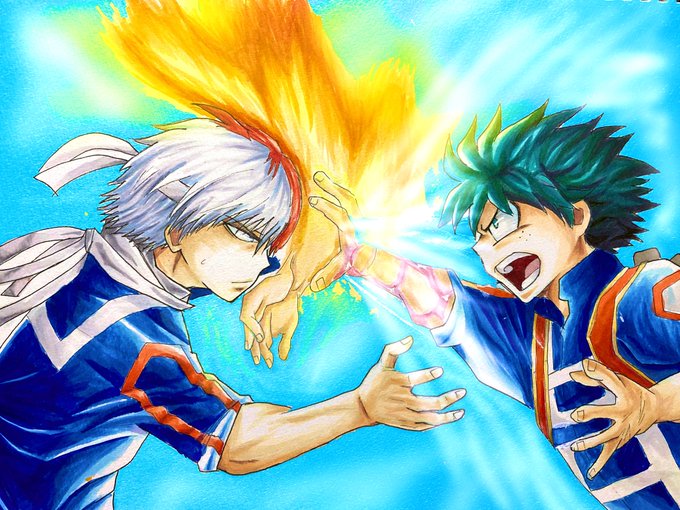 体育祭の騎馬戦 炎はコピックやけど、背景初めてデジタルでしてみた。 スマホ&指で塗ったから適当やけどやっぱ背景欲しいので、スタイラスペン買おうかな( ・∇・) #ヒロアカ #緑谷出久 #轟焦凍 #コピック #アナログイラスト #イラスト練習中