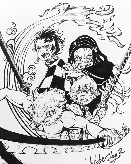 #Inktober day 2/31! I love it so much, so I absolutely had to draw #kimetsu_no_yaiba #鬼滅の刃 👺 #Inktober2019 #インクトーバー