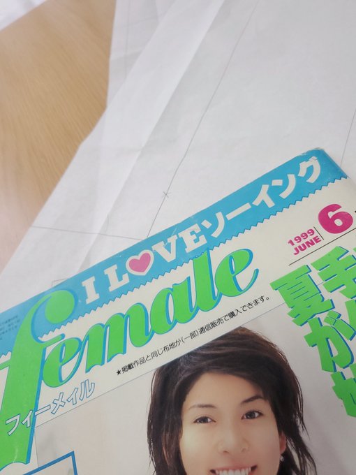 私のパターン作成は、実物大の型紙を写してアレンジする方法です🙋♀️ 自信がない時は、安い布で仮に組み立てて調整するよ✏ 今回は母が持ってた雑誌を借りたら、1999年て…😇 #ちぃさんのコスプレ製作