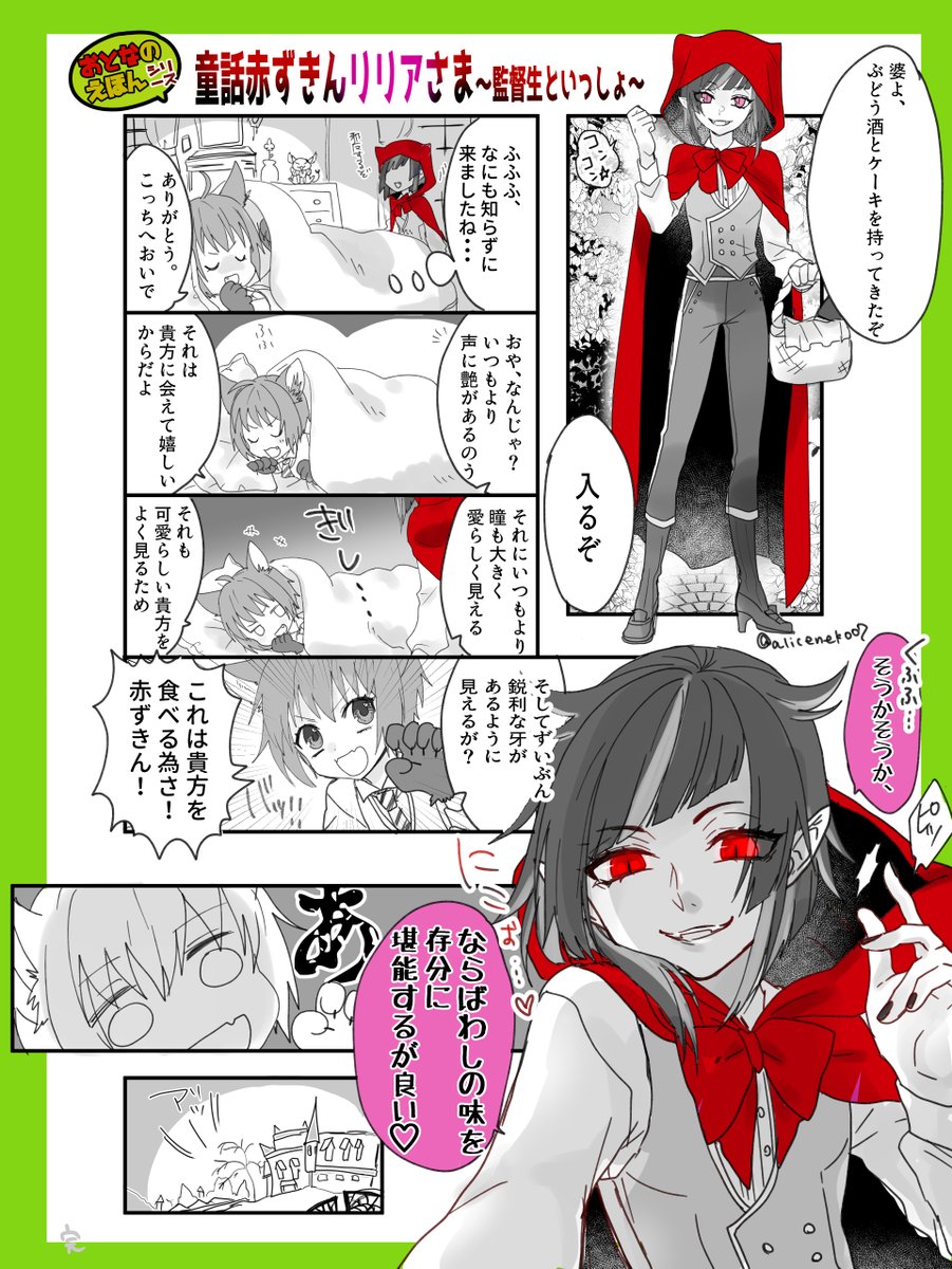 169 1498 ※おとなのえほんシリーズ①(嘘)リリ監🦇🌸 !監督生ガッツリ顔出てます注意! 妄想が爆発してかきました模造しかない #twstプラス 20/07/26 12:10